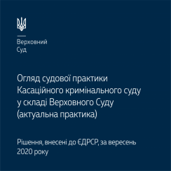 До огляду вміщено низку важливих правових позицій Касаційного кримінального суду у складі Верховного Суду, висловлених під час розгляду кримінальних проваджень у вересні 2020 року, зокрема щодо: