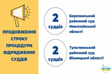 Вища рада правосуддя відповідно до рішень від 12 листопада 2020 року № 3105/0/15-20 та № 3106/0/15-20 продовжила строк надання суддями згоди на відрядження до Тульчинського районного суду Вінницької області та до Березанського районного суду Миколаївської області до 23 листопада 2020 року.