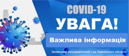 Повідомляємо, що в Ізюмському міськрайонному суді Харківської області лабораторно підтверджено три випадки захворювання на гостру респіраторну хворобу COVID-19, спричинену коронавірусом «SARS-CoV».