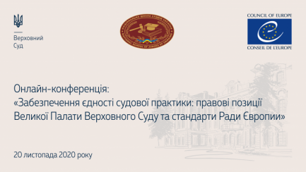 20 листопада 2020 року в рамках міжнародної онлайн-конференції «Забезпечення єдності судової практики: правові позиції Великої Палати Верховного Суду та стандарти Ради Європи» експерти Ради Європи та Національної школи суддів України приєдналися до дискусії щодо єдності судової практики ВС та її відповідності європейським стандартам і проаналізували її у контексті ст. 6 Конвенції про захист прав людини і основоположних свобод (Європейської конвенції з прав людини) та рішень Європейського суду з прав людини щодо України.