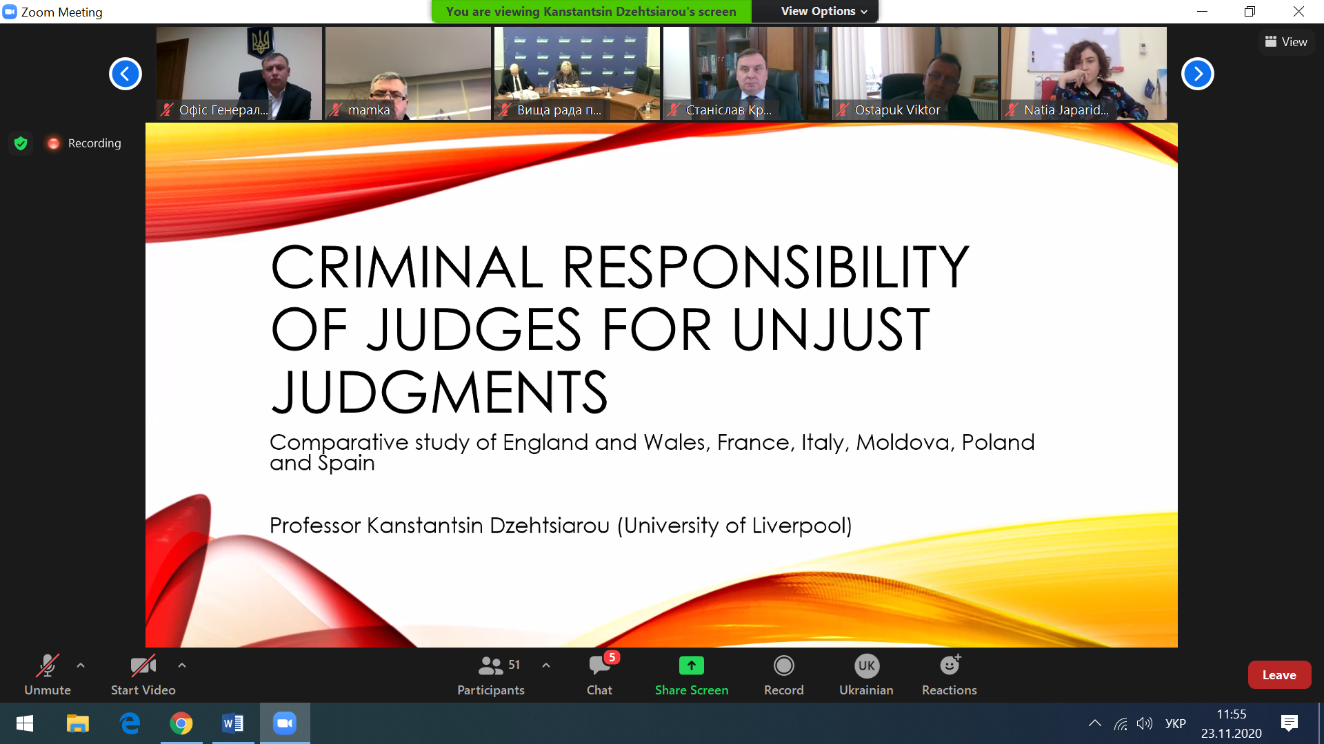 Професор, міжнародний консультант РЄ Канстанцін Дзехцяроу присвятив свій виступ порівнянню досвіду Англії та Уельсу, Франції, Італії, Молдови, Польщі й Іспанії у вирішенні питання суддівської відповідальності. Як зауважив доповідач, підходи до вирішення цього питання у зазначених країнах різні. Так, в Англії та Уельсі – ліберальний підхід, тобто судді фактично не несуть кримінальної відповідальності за ухвалені рішення. Водночас недоторканність, імунітет суддів Англії та Уельсу є функціональними, за «загальні кримінальні правопорушення» вони несуть відповідальність, як і інші громадяни. У Польщі та Італії існують певні норми щодо цивільної, дисциплінарної відповідальності суддів.