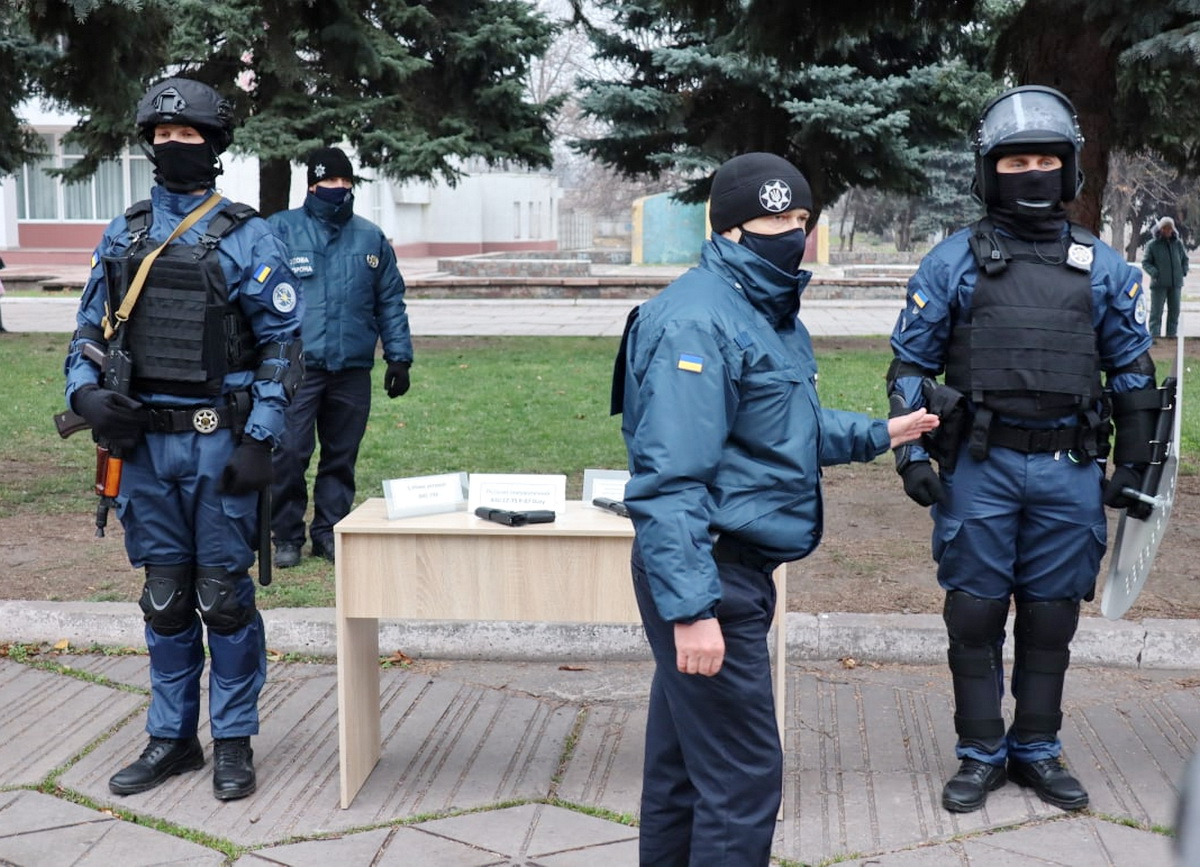 Презентуючи кам’янчанам Службу судової охорони, судові охоронці Дніпропетровщини продемонстрували зразки однострою, екіпірування, спеціальних засобів підрозділів охорони, швидкого реагування та особистої безпеки суддів, засоби зв’язку тощо.