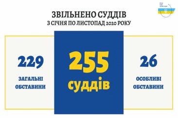 Із січня по листопад 2020 року Вища рада правосуддя прийняла рішення про звільнення 255 суддів. За загальними обставинами звільнено 229 суддів: 228 – у зв’язку з поданням заяв про відставку, 1 – у зв’язку з поданням заяви про звільнення за власним бажанням.