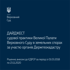 Пропонуємо ознайомитися з Дайджестом судової практики Великої Палати Верховного Суду в земельних спорах за участю органів Держгеокадастру за період з 1 березня 2018 року по 23 листопада 2020 року.