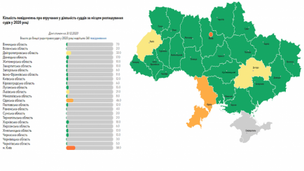 На офіційному вебсайті Вищої ради правосуддя оновлено інформацію на температурній мапі, що містить дані стосовно кількості повідомлень про втручання у професійну діяльність суддів щодо здійснення правосуддя, які надходили до Вищої ради правосуддя протягом минулого року.
