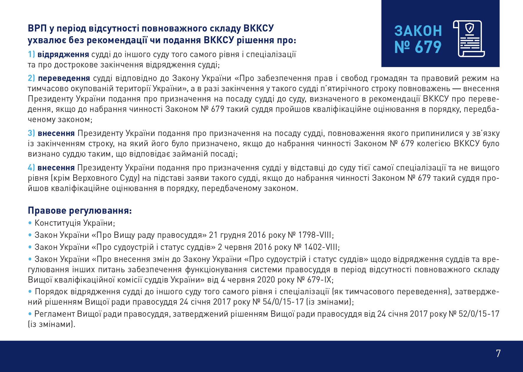 «У зв’язку з непродуманими законодавчими змінами вже понад рік як припинена діяльність Вищої кваліфікаційної комісії суддів України і, як наслідок, процедури оновлення судової системи (призначення суддів, кваліфікаційне оцінювання суддів) заблоковані. Поряд із цим, незважаючи, що ВРП відповідальна за формування висококваліфікованого суддівського корпусу, без повноважної ВККСУ цю функцію виконати неможливо», зазначив заступник Голови ВРП.