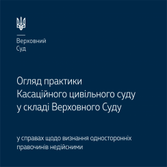 В огляді відображено важливі правові висновки Касаційного цивільного суду у складі Верховного Суду, висловлені під час розгляду цивільних справ у спорах щодо визнання односторонніх правочинів недійсними, зокрема такі: