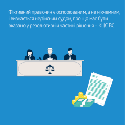 Тлумачення ст. 234 ЦК України свідчить, що фіктивний правочин належить до оспорюваних правочинів, тобто визнається недійсним на підставі судового рішення, про що має бути вказано в резолютивній частині рішення.