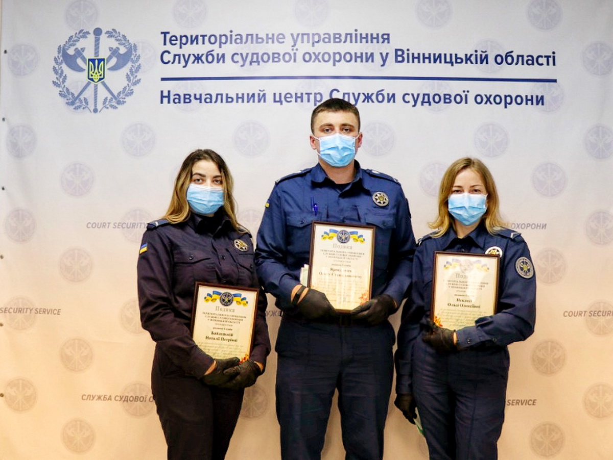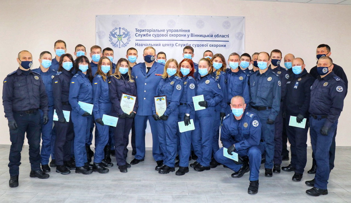 Начальник Територіального управління Служби судової охорони у Вінницькій області полковник Служби судової охорони Євгеній Прудиус вручив випускникам свідоцтва державного зразка про присвоєння кваліфікації “Охоронник 3-го розряду”, а найкращих відзначив грамотами за досягнення високих показників під час проходження професійного навчання.