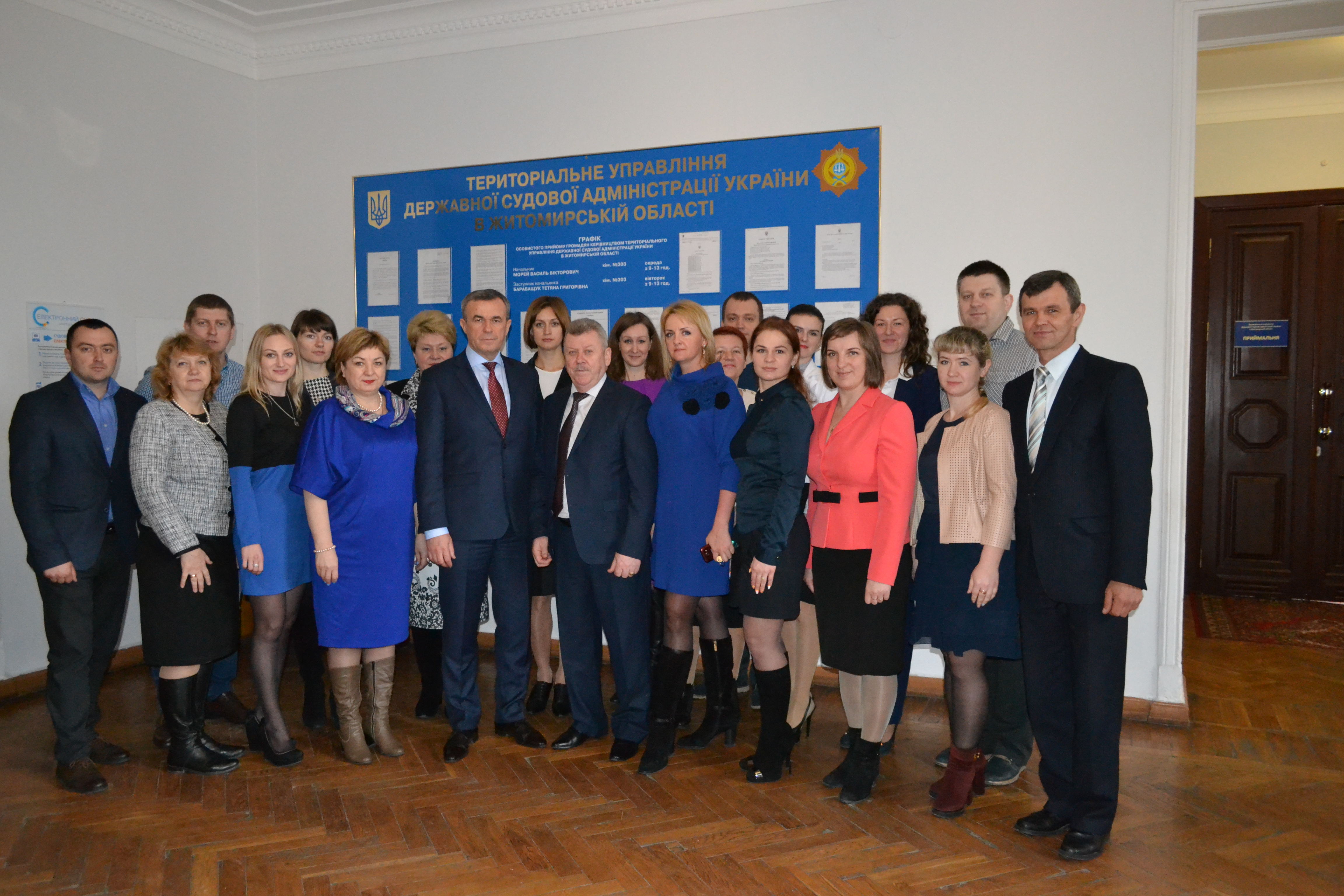 У заході взяли участь: Голова Державної судової адміністрації України Зеновій Холоднюк, член Ради суддів України Тетяна Чумаченко, голова та заступники голови Апеляційного суду Житомирської області Віталій Котік, Юрій Жизнєвський та Ірина Гансецька, начальник територіального управління Державної судової адміністрації України в Житомирській області Василь Морей, голова господарського суду Житомирської області Валерій Давидюк, заступник голови Житомирського окружного адміністративного суду Євген Романченко, судді Апеляційного суду Житомирської області, голови та керівники апаратів місцевих загальних судів Житомирської області, керівники структурних підрозділів територіального управління ДСА України в Житомирській області.