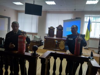 На завершення судді та працівники апарату взяли в руки вогнегасники та за допомогою рятувальників вчились гасити полум'я.
