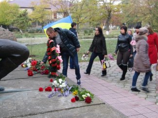 Учасники мітингу вшанували пам’ять загиблих хвилиною мовчання та покладанням квітів до меморіалу.