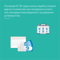 Постанова КГС ВС щодо початку перебігу позовної давності за вимогами про покладення на третіх осіб субсидіарної відповідальності за доведення до банкрутства.