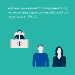Відповідно до вимог закону учасники кримінального провадження та суд не мають права перебирати на себе обов’язки перекладача, користуватися його правами та нести відповідальність.