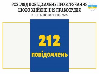 Упродовж січня – серпня 2020 року до Вищої ради правосуддя надійшло 231 повідомлення про втручання у професійну діяльність суддів щодо здійснення правосуддя, про дії, що порушують гарантії незалежності суддів або підривають авторитет правосуддя. За аналогічний період 2019 року до ВРП надійшло 298 таких повідомлень.