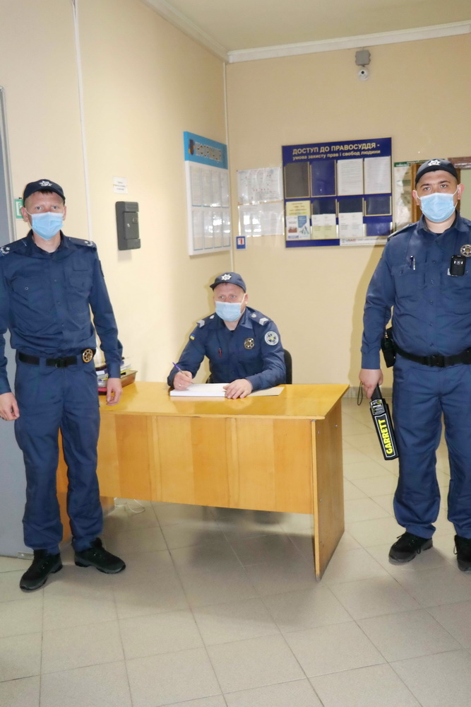 Начальник Територіального управління Служби судової охорони у Львівській області полковник Служби судової охорони Володимир Семенина особисто представив колективу суду співробітників, які охоронятимуть приміщення судової установи та забезпечуватимуть підтримання громадського порядку в суді та безпеку всіх учасників судових процесів.