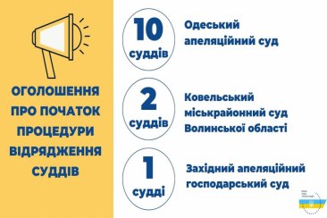 Вища рада правосуддя відповідно до рішень від 17 червня 2021 року №№ 1411/0/15-21, 1412/0/15-21, 1413/0/15-21 оголошує про початок процедури відрядження суддів до іншого суду того самого рівня і спеціалізації для здійснення правосуддя, а саме до: