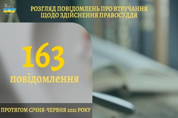 Із початку року до ВРП надійшло 152 повідомлення про втручання у професійну діяльність суддів щодо здійснення правосуддя та дії, що порушують гарантії незалежності суддів або підривають авторитет правосуддя. З урахуванням повідомлень, які надійшли в попередні періоди, у першому півріччі Рада розглянула 163 повідомлення.