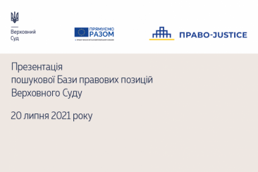 Сьогодні, 20 липня 2021 року, о 15:00 відбудеться презентація Бази правових позицій Верховного Суду, створеної за підтримки проєкту ЄС «Право-Justice».
