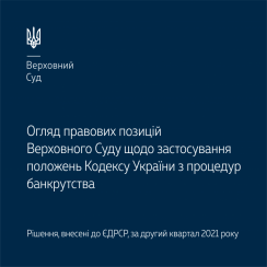 Пропонуємо до вашої уваги Огляд правових позицій Верховного Суду щодо застосування положень Кодексу України з процедур банкрутства (за другий квартал 2021 року).