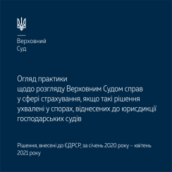 Огляд практики щодо розгляду Верховним Судом справ у сфері страхування, якщо такі рішення ухвалені у спорах, віднесених до юрисдикції господарських судів