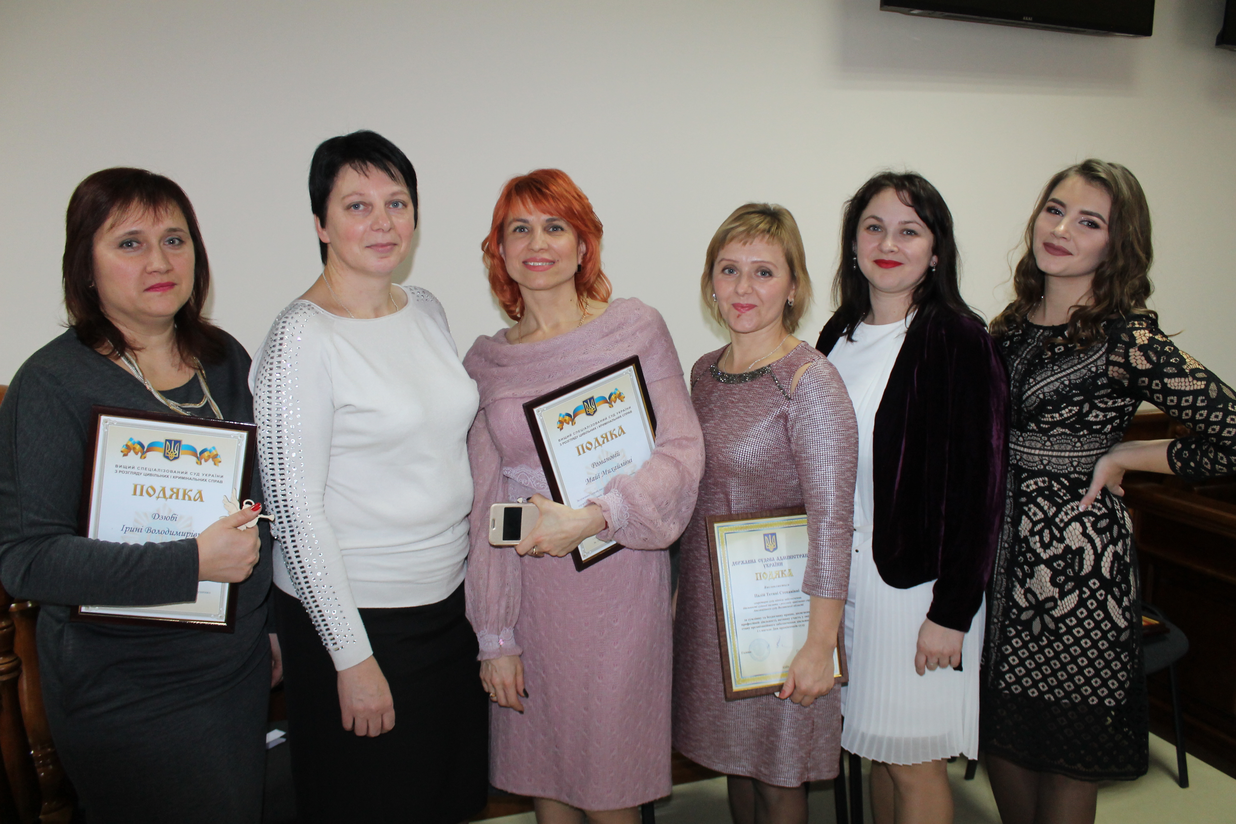За високий професіоналізм, багаторічну сумлінну працю були відзначені судді у відставці та працівники апарату суду. Зокрема: нагрудним знаком «Почесна відзнака Вищої ради правосуддя» нагороджено суддю у відставці Анатолія Хомицького; Почесною грамотою Ради суддів України нагороджено суддів у відставці Катерину Антонюк та Миколу Польового; працівників апарату за сумлінну роботу відзначили грамотами та подяками Ради суддів України, Державної судової адміністрації України та подяками голови апеляційного суду області.