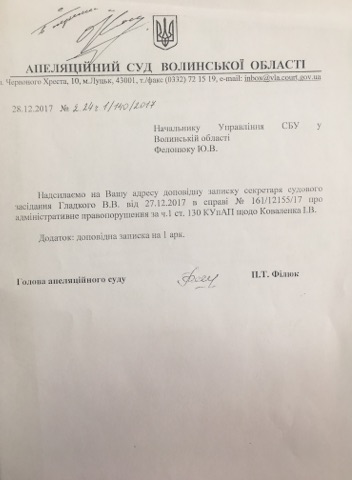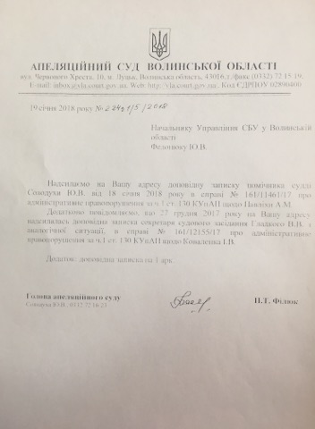 Щодо двох таких випадків головою Апеляційного суду Волинської області уже проінформовано Управління Служби безпеки України у Волинській області (копії долучаємо).